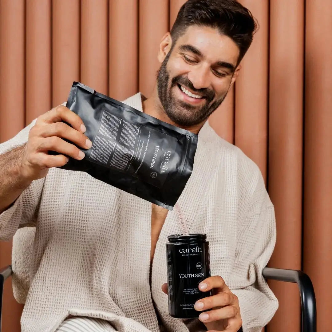 Youth Skin to kompleksowa formuła odmładzająca. Aż 20 supermocnych składników aktywnych, których działanie przeciwstarzeniowe udowodniły badania naukowe. Duża porcja łatwo przyswajalnego, hydrolizowanego kolagenu rybiego o bardzo niskiej masie cząsteczkowej wynoszącej zaledwie 2000 daltonów, zapewnia najwyższą przyswajalność i działanie. Formuła dostarcza także składniki, które wspierają syntezę i budowę kolagenu oraz witaminy i antyoksydanty, które poprawiają jędrność, elastyczność i nawodnienie skóry.