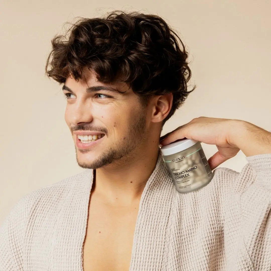 Tricho Amino Complex to dermosuplement trychologiczny zmniejszający łamliwość włosów, którego przyczyną mogą być niedobory białka w diecie, które stanowią źródło aminokwasów. Zasadniczym mechanizmem działania aminokwasów jest produkcja keratyny, a także kolagenu i elastyny. Dzięki temu włosy zwiększają wytrzymałość na czynniki zewnętrzne – w tym mechaniczne, jak i termiczne. Zawartych w produkcie 18 aminokwasów wraz z MSM, czyli siarką organiczną, glikozaminoglikanami i skrzypem polnym bogatym w krzem, wzmacniają wiązania między cząsteczkami keratyny, a także stymulują wzrost włosów.