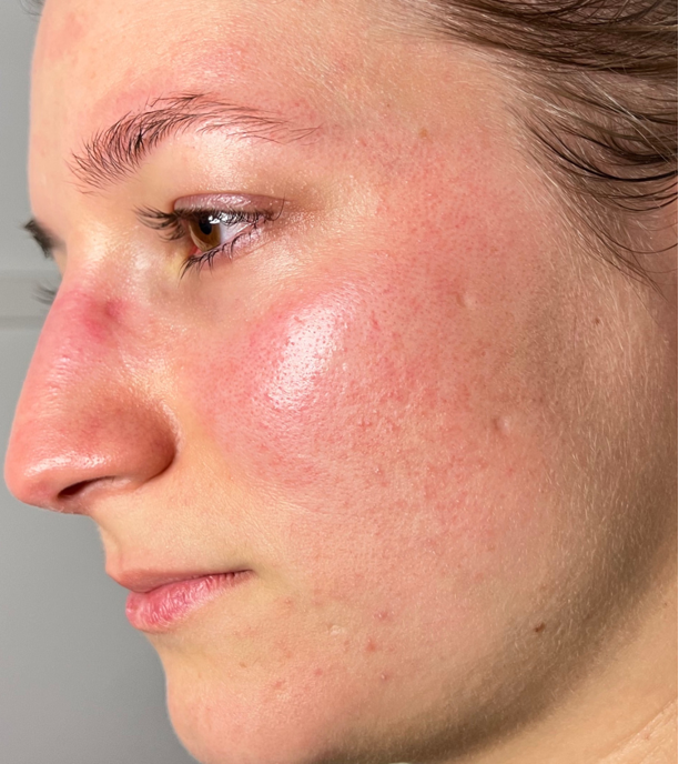 Cera naczyniowa charakteryzuje się rumieniem, osłabioną barierą naskórkową oraz skłonnością do podrażnień. Często towarzyszą jej teleangiektazje – rozszerzone naczynia krwionośne, powszechnie nazywane „pajączkami”. Brak odpowiedniej pielęgnacji może sprawić, że rumień utrwali się, a na skórze pojawią się grudki i krosty – objawy charakterystyczne dla trądziku różowatego.