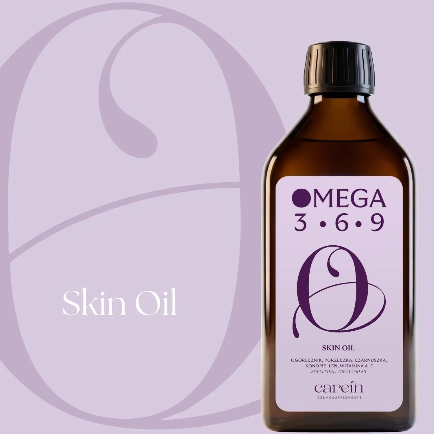 Omega 3-6-9 Skin to olej funkcjonalny opracowany z myślą o wsparciu fizjologicznych procesów zachodzących w skórze, w szczególności w kontekście skóry skłonnej do stanów zapalnych, niedoskonałości, nadreaktywności i osłabionej bariery (np. w przebiegu trądziku, trądziku różowatego czy skóry atopowej). Zawiera starannie dobraną kompozycję olejów roślinnych bogatych w wielonienasycone kwasy tłuszczowe (PUFA). Jest bogatym źródłem kwasu gamma linolenowego (GLA) - kwas szczególnie istotny w regulacji procesów zapalnych i funkcji bariery skórnej. Produkt jest tłoczony na zimno, nierafinowany i przeznaczony do codziennego stosowania jako element świadomego wsparcia skóry od wewnątrz. Pojemność 250 ml.